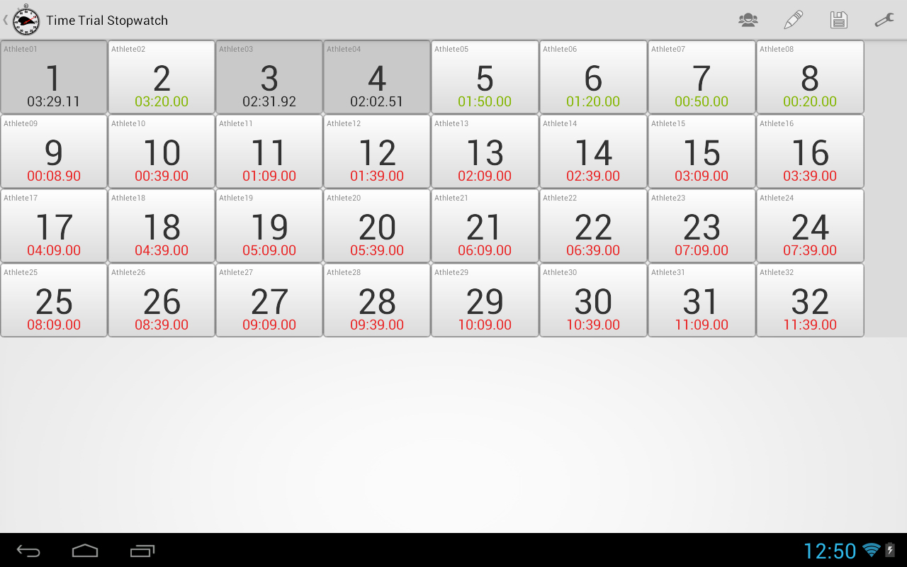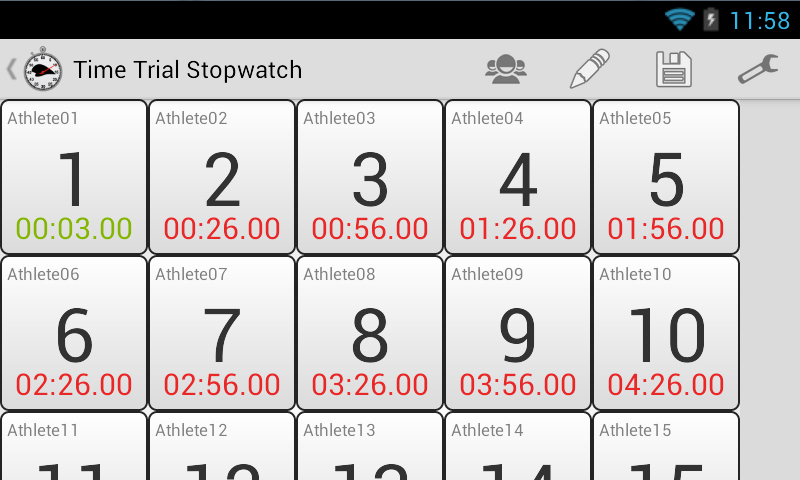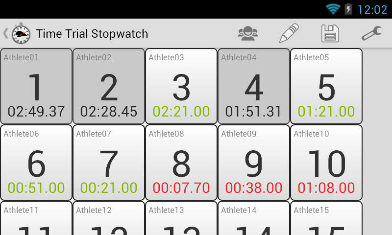 - The time of athletes currently performing, is green and the time of athletes waiting to start, is red.