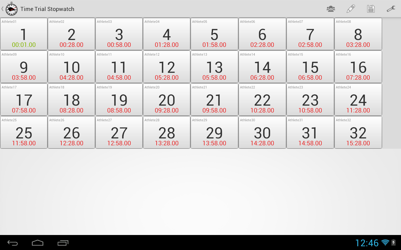 This is no ordinary stopwatch, but a stopwatch to use during a time trial where the athletes start at a fixed interval.